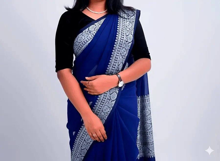 নেবি ব্লু জবা পাইর শাড়ির প্যাকেজ😍